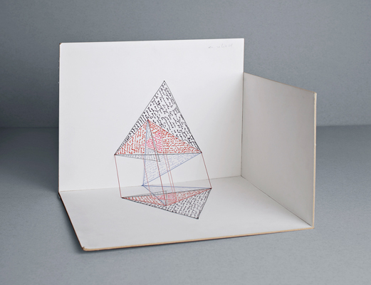 Maqueta de Esther Ferrer para la instalación «Triángulo interno de Napoleón» (finales años 1980), es la proyección del triángulo interno de Napoleón mediante hilo o cable.