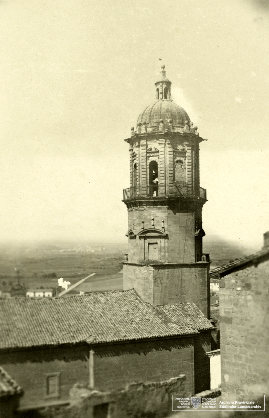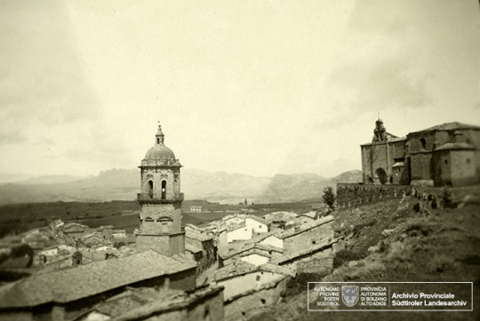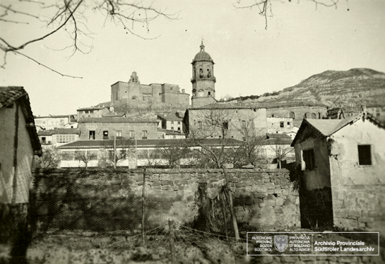 Sabemos que Guglielmo Sandri pasó también por Labastida, gracias a estas fotografiás encontradas en la basura, que alguien tiró tras la muerte de la mujer de Sandri, y que ahora custodia el Archivo Provincial de Bolzano. En Labastida entonces, estaba instalado un destacamento de tropas italianas fascistas que ocupaban dos casas del pueblo. Una para los soldados y otra para oficiales. No sabemos cuanto tiempo permaneció en Labastida Sandri, tampoco sabemos en que fecha llegó. Estas seis fotografías que hizo, ahora rescatadas, nos permiten ver parte del pueblo en aquellos años. Al fondo o de refilón, algún soldado italiano. La iglesia, con una de las ventanas del campanario tapiada, la ermita del Cristo, el arco del Toloño o la casa de Larrazuria.